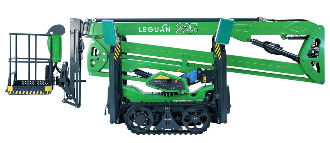 The Leguan 225 is the industry-leading all-terrain spider lift, which has a maximum outreach of 11.2m and a max working height of 22.5m, the Leguan intelligent features minimise malfunctions and boost efficiency, allowing one to focus on the task at hand. Whilst equipped with a high-profile track platform, easy joystick controls and boom operation allow the movements to become second nature.
